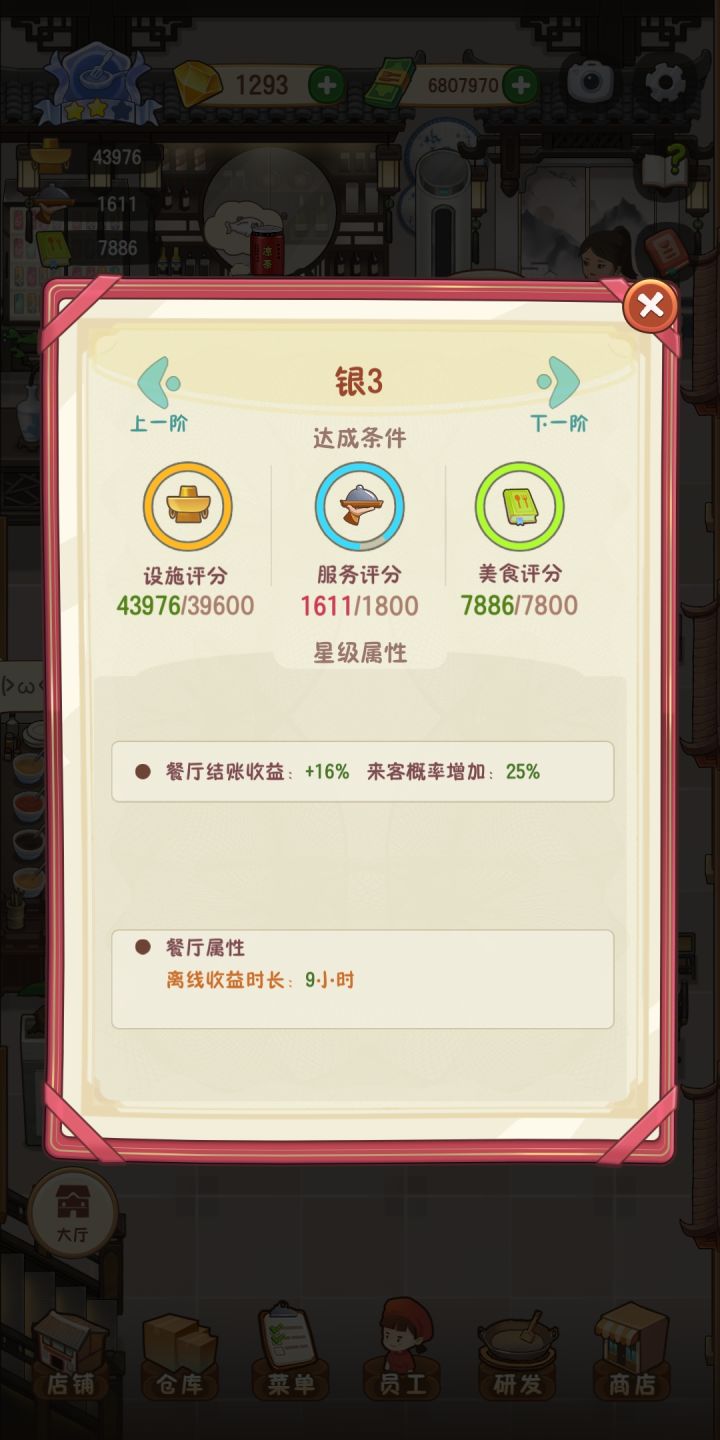 服务评分好难冲,但我发现了一个可以稍微没有辣么肝的方法:8次娃娃机,保底380,换需要50,一共得3040,可以换60,余下40,如果上次抓娃娃机有剩余10+以上的积分就可以换61本,辣么娃娃机保底就是60-61;招财猫那边呢我的一天保底可以出6-7本(离线时间长一些得技能书的概率就大一些,个人感觉哈,本人也是在无意中发现的),菜品在保证集齐完之后,把四叶草砸进技能书上,可以保底换到15本;辣么技
