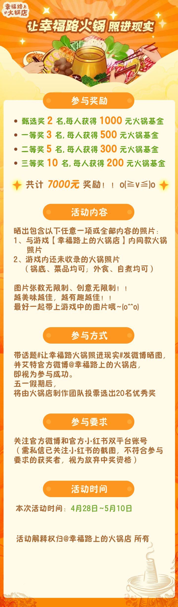 请关注官网微博、小红书“幸福路上的火锅店”、官方Q群及时获取最新活动内容和游戏资讯: