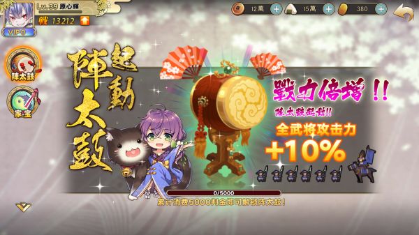 一、殿殿里可都是好东西,全部都是全战姬覆盖的成长点!战鼓、式神、家宝、装备,每个都能让你强力一大截,一个强不叫强,全战姬强才是制霸战国应有的亚子!二、战鼓春风吹战鼓擂,战国武姬怕过谁?!大军出征,怎能没有战鼓励军!战鼓可为全体战姬带来全方位的巨大提升,包括攻击、防御、血量、命中、闪避、暴击、韧性等。并且由于提升百分比数值,随着战姬的成长,所提供的数值将越来越强!