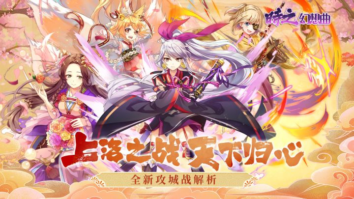幕府战国时期,京都亦称洛阳,大名率兵攻入京都,威霸天下,是为上洛。《时之幻想曲》全新的攻城战—上洛之战,赛季后期限时开启,群雄汇聚,强强对决,胜者为王,角逐天下人家族荣耀,堪称真正的终极之战!【城战概述】全新的攻城战分为进军京畿和上洛之战两大阶段,将直接在世界地图中进行,各大家族平时就可在京畿地区内跑马圈地,在上洛之战的三天内向京畿藩府和最中心的“二条御所”发起冲击,最终夺取二条御所的家族便是