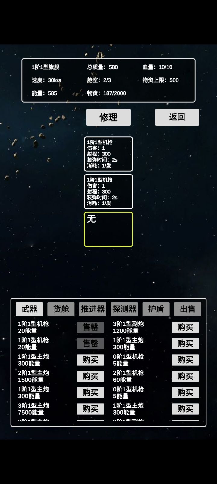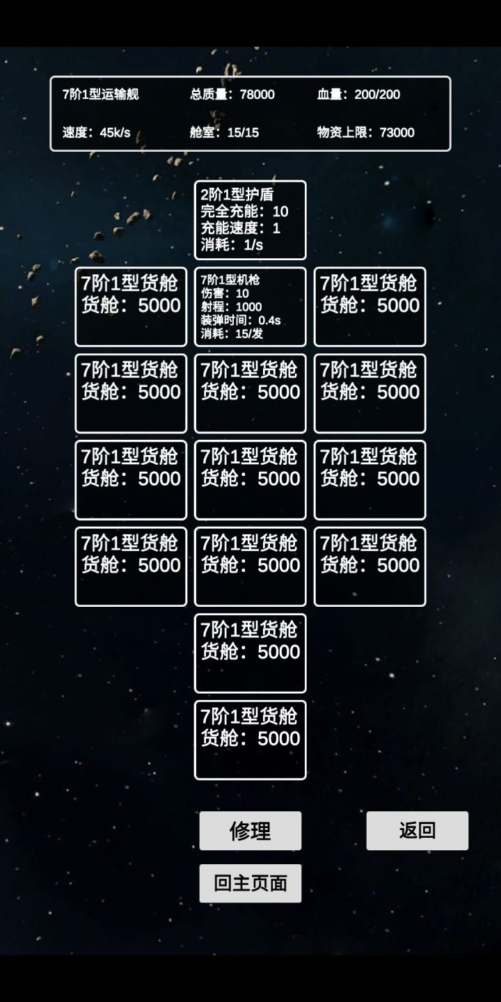 运输舰+盾,加1-3个武器,其余全仓库,比战舰好用多了。正常游戏稳一点就是买基地舰,占个富饶度合适的星球慢慢自己造船。差不多了再买个更高级的基地舰占更富饶的星球。游戏胚子挺好,可惜内容太少,还是半成品。