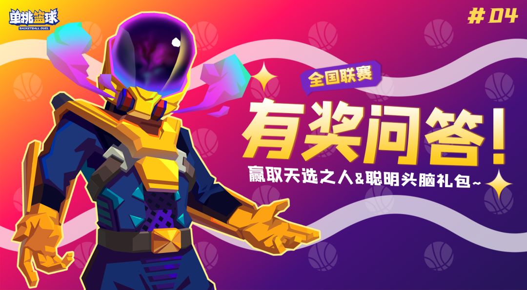 天选之人礼包获奖楼层:8 聪明头脑礼包获奖楼层:6 12 16 23 26 28 34 39 40 46 第四期有奖问答来啦!本次有奖问答题目围绕的是我们即将开始的单挑篮球全国联赛相关内容哦~ 如果有不清楚的问题,小伙伴们可以查看往期活动帖子哦~ 本期的奖励依然是我们的宝箱&金券! 新的幸运球妹子球员“卡洛琳”已经上线单挑篮球! 也是受到了很多小伙伴的喜欢,大家抓紧时间肝金券,拿下“卡洛琳”哦~ 🏀