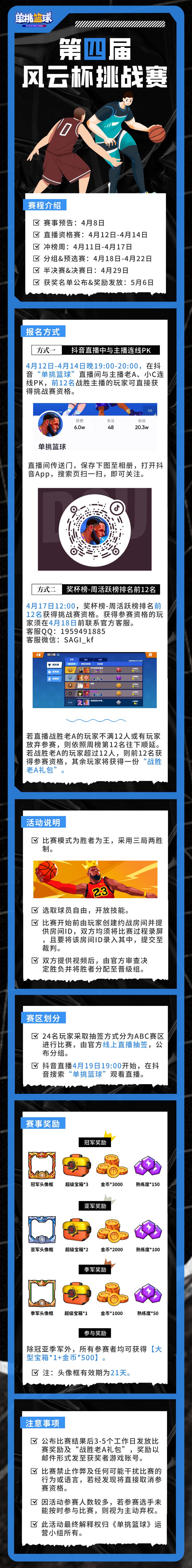 最新单篮球超神球员,ready! 第四届风云杯抽签,ready! 老A小C直播挑战赛,ready! 赶紧点击下方链接,了解活动详情