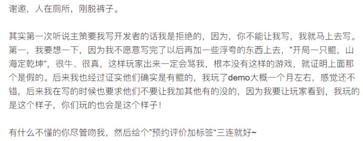 (2)说实话,这对手机游戏很难,我知道,以上也不过是我的幻想而已,但尽量往这方面去靠,玩法!游戏最重要的是玩法!所有品质都可以低,玩法要先搞好,玩法一定要抓住人心,让人感受到,遨游在洪荒山海经之中的自由感,其他的后面都能提升
