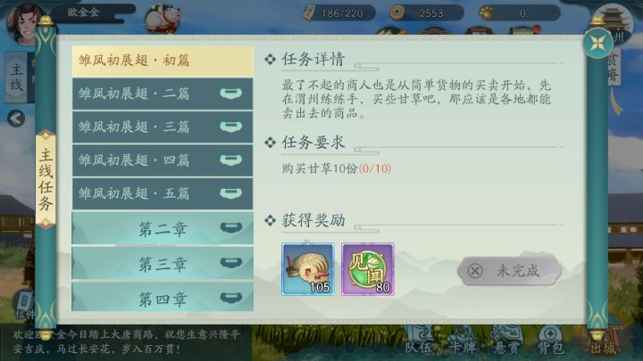 小东家好呀,不知道大家的行商是否顺利,是否有得心应手的感觉了呢?今天阿玉给各位带来了一些赚钱小技巧,希望小东家们都能在长安赚得盆满钵满~【主线任务】完成主线任务能获得大量的奖励。如果小东家遭遇行商的瓶颈,不妨去试试完成主线任务,长安商社会在任务中不断磨练您的行商能力的~【投资城市与邸店制作】在大城市开启邸店后,投资指定城市可以解锁相关道具的图纸。道具可以增加随从的能力,对探险以及行商提供