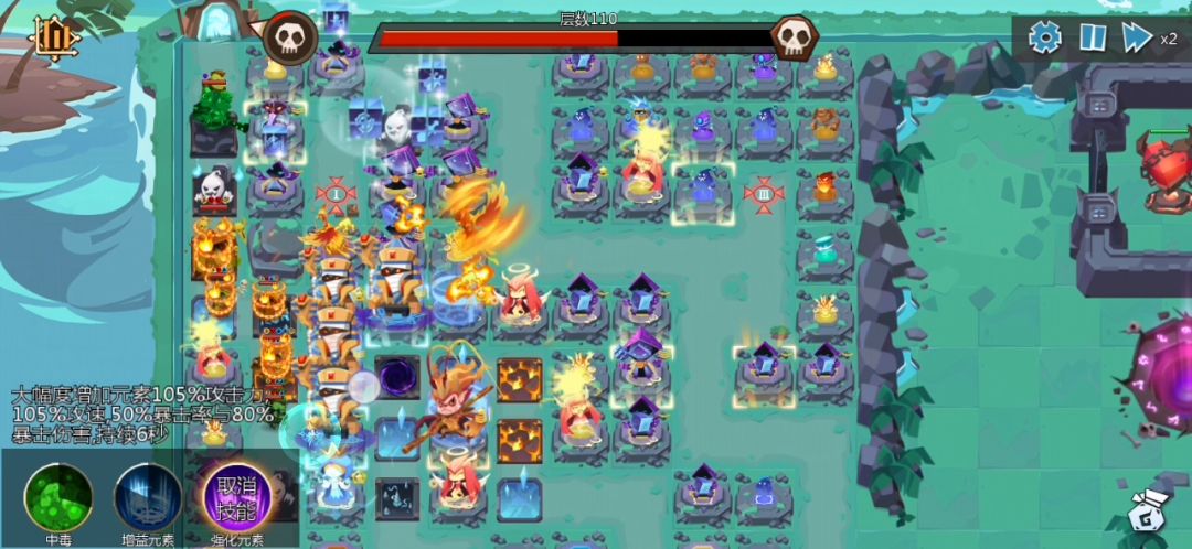 元素地形刷的不好,只能让怪多走几步了😇
