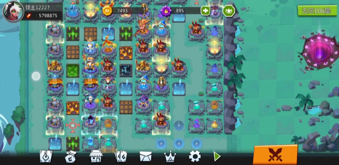 110层,这配置打了7分钟,到80层把抽卡牌换暗系加成火系加成,优先打空中的,其次小兵,在打boss