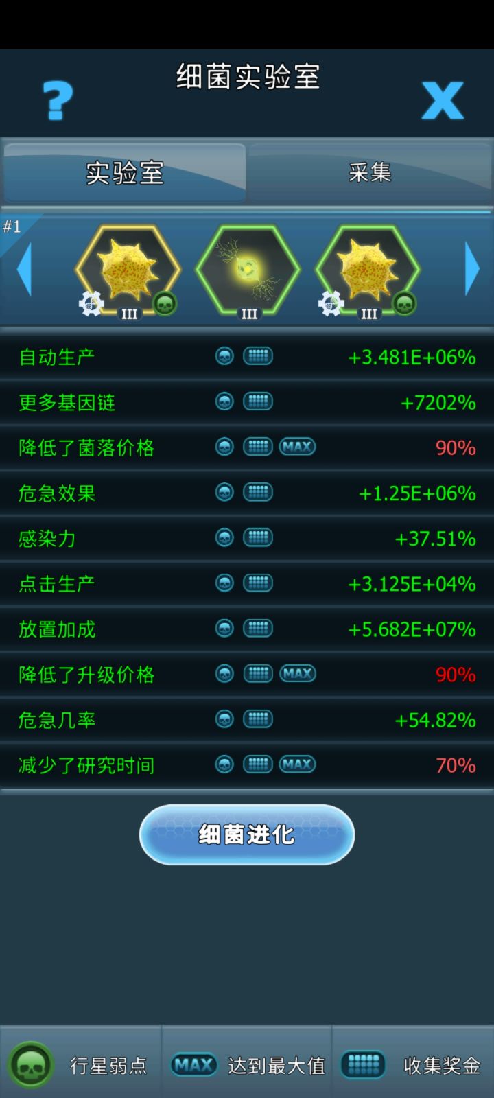 玩了几天,说一下吧,新手的话慢慢来,主要开星球,后面打不动了可以搞进化细菌,具体是凑图鉴等级,5个等级,5个品质,前面只能升3级,后面的4,5要进黑洞点科技开,奖金主要是你一种细菌五个品质都有就是x2,然后五个品质每个都是2级就是x3,以此类推,这边推荐刚刚开始没开黑洞的时候主要就先开黑洞,进去一次之后开始搞传说,慢慢搞图鉴,注意进去一次后就要一直往后打,打到打不动为止再进去,优先开细菌的4级强化,加成比科技高多了,其他的去看下面两个大贴,我这个是补充