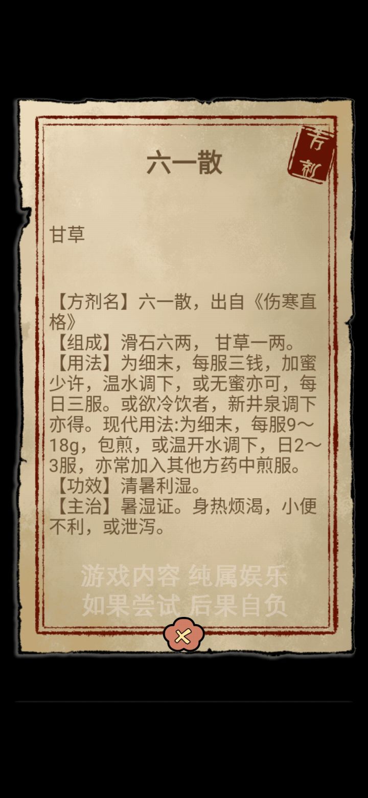 通过一段时间玩这个游戏,整理了一下现有药方再者就是总结下经验吧1,关于赚钱这方面推荐 清震汤:升麻+苍术 两种药材集市都能买到,一副药方8000 比较划算2,关于此次更新两个柜台小哥,建议买草药铺子的,方剂铺没必要买,买了也不怎么干活,而且遇到你攒药材时说不定就把你药材用了;草药铺建议多种些牡丹去卖,价格我没算过,不过牡丹单价最高,想必卖出时也不便宜。3,关于游戏方面想提些建议 一是发现新