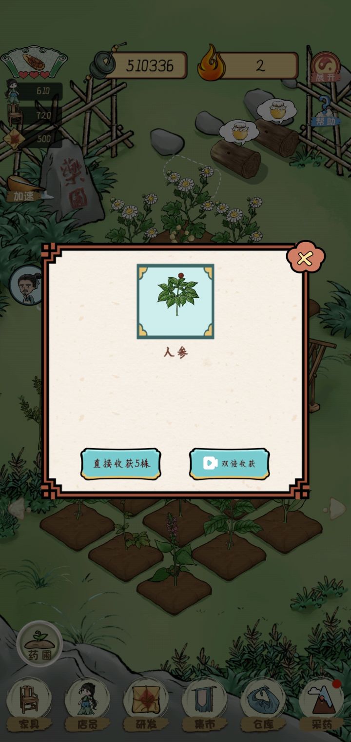 全部满级,现在就是有空就上线看个广,采个药,熬图鉴,计划一直玩到图鉴收集齐,方剂收集齐肯定是不指望了哈哈哈我玩的很佛,前期用用加速,后期钱够一点买一点前期就是解雇自动制作方剂,手动金果饮直接上。有钱就买地(草药地优先,其他前期够用就行),播种机一定要,经济搞上来,升级大夫和店员,其他的最后根据需要买买。草药铺一定要最后开!不指他挣钱!早晚都能买满。
