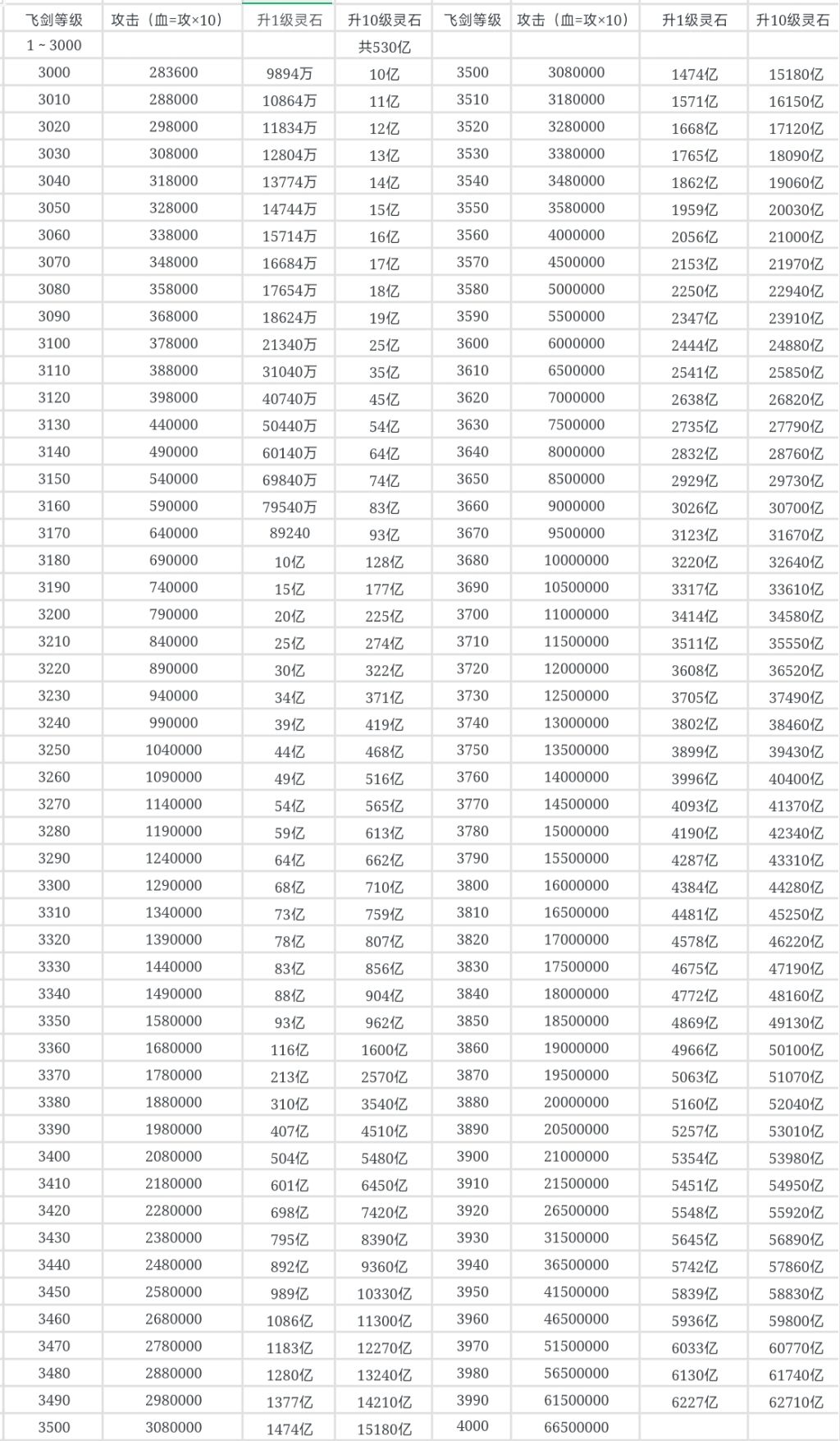 一、飞剑3000~4000级 二、神器部分等级 三、vip各级经验 四、肾天人/天神/古神/虚神