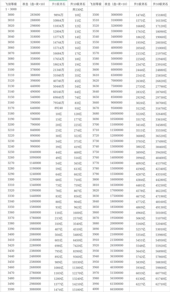 一、飞剑3000~4000级二、神器部分等级三、vip各级经验四、肾天人/天神/古神/虚神