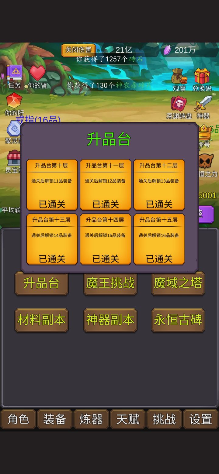 大家好啊,为了方便同学们挂机挂的更顺心,再添加了许多玩法之后,我对离线的收益做了一次大调整,基本上属于离线也能玩的很开心了,另外广告收益也翻了一倍,CD改成20秒(应该是不被判罚的最低值了)。祝大家游戏愉快!下面贴一下48版本的更新内容,之前几个版本的大家可以去游戏介绍界面看日志哦~1.0.048版本更新内容1:重新调整离线挂机的材料掉落。(按20秒通关一次玩家的最高层数计算奖励,之前为60