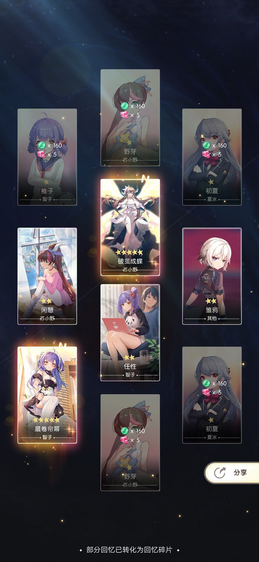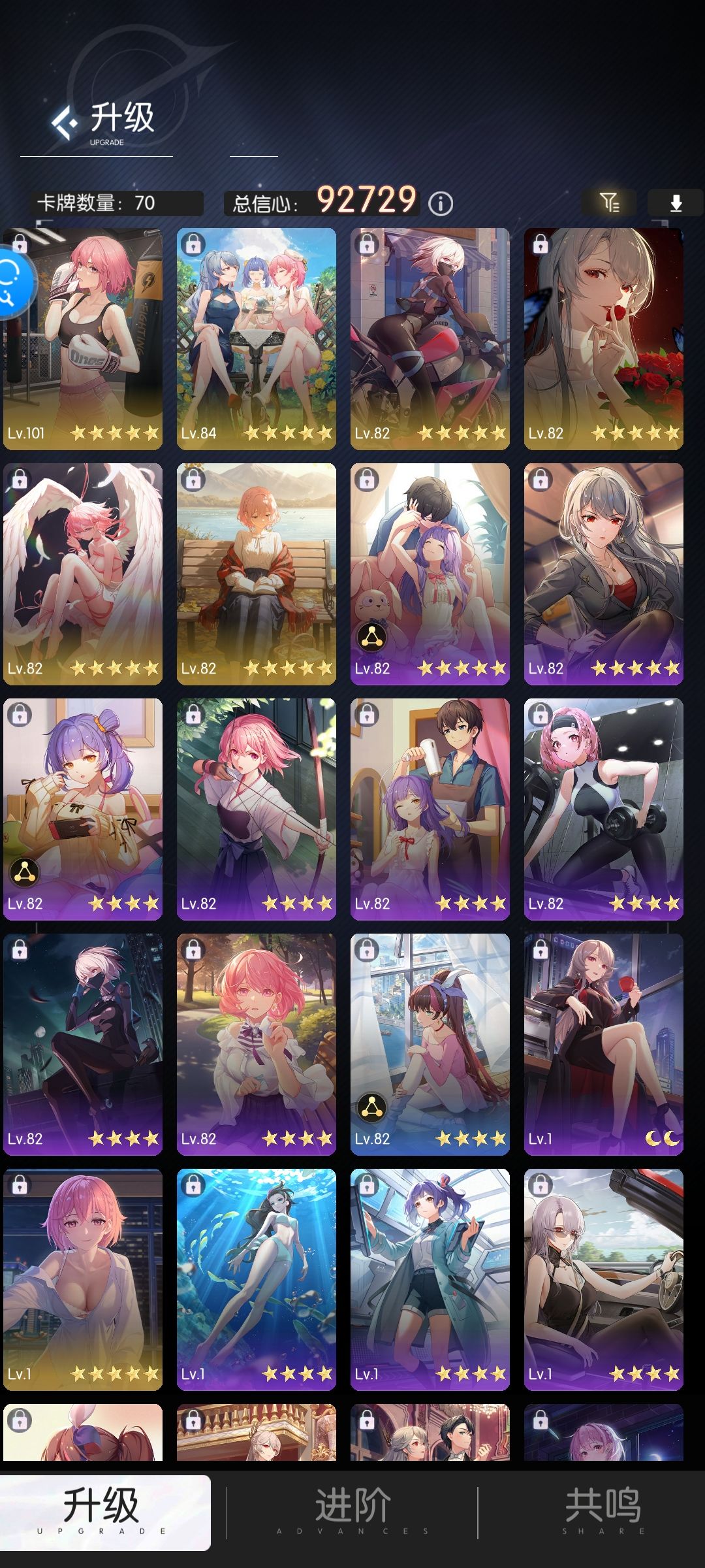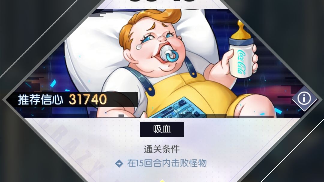 巨婴有两个技能,第一个是造成当前信心36%的伤害,不会致死,第二个是造成总信心23%的伤害,他的技能没有造成固定伤害的(比如5k,8k这样的),所以带的卡片总信心不需要太多,我只带了六张卡,方便能一直抽到想要的卡牌,三张百分比伤害卡,三张治疗卡,苏小野余晖碧影,其他雏鸦,白鸥回眸,白鸥疗愈之晖(神卡,有百分比回血有固定回血),随便两张回血卡,重置不额外消耗,所以尽情升级这几张卡就好了 上了6张,此