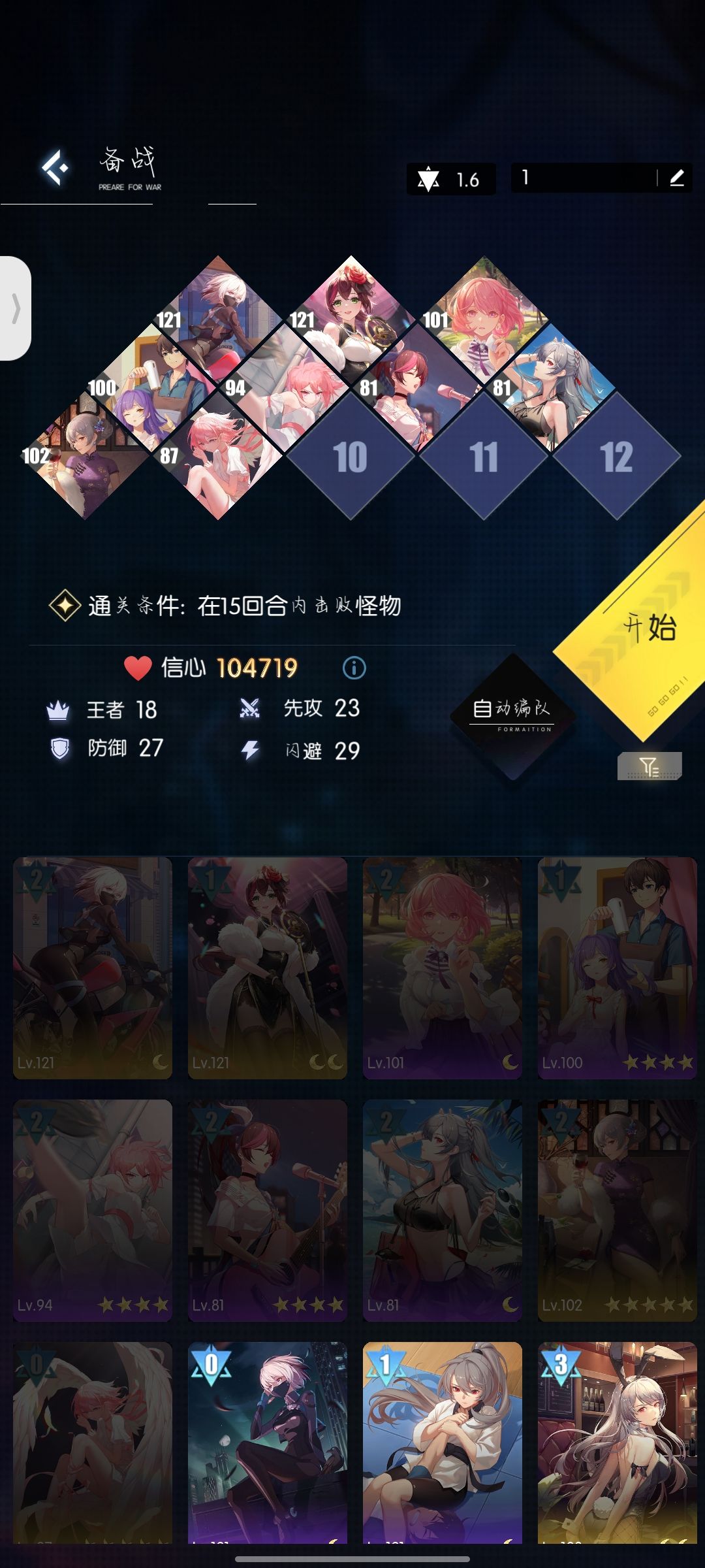 无121级摩托4回合薄纱谢总,楼主加上今天玩了七天,因前面信心不够一直被谢总卡住,今天终于找到机会好好跟他击剑🤤🤤🤤 小声bb:四回合不把他打死,第五回合就会被他暴打 另外:文中有些文中有些卡,按照自己的库存来进行平替也是可以的 ——————————— 刚需: 11w信心(低于这个血条会被流血致死) 周一(至少要到81级,121级最稳),没有周一的话就要121级的无处可逃 夏总凶险绞缠(至少81,