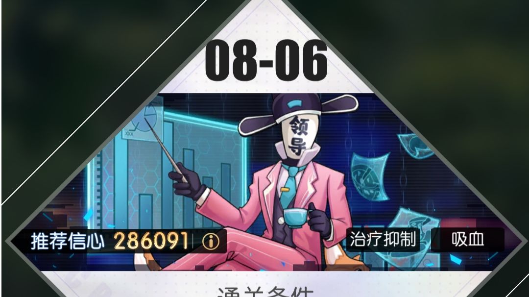血量要求不用太高,13w左右就行,主要是能撑住他一发重击和普攻。 基本不用治疗,死命输出(所以带了梦醉和对戏,不管血量无脑输出就完事儿了)在他被动治疗效果出来之前压到8.9w血就能杀,压不到基本就没戏了哈哈。然后他扔第二个重击的时候看情况技能选猫爪或者上车(咱就挡这一次伤害,没第二次机会了,下一次重击前干不死就寄。)之后还是一直输出,有周一和飞踢斩杀线还算挺高。第六章第一个黑公关需要凹一下治疗那一