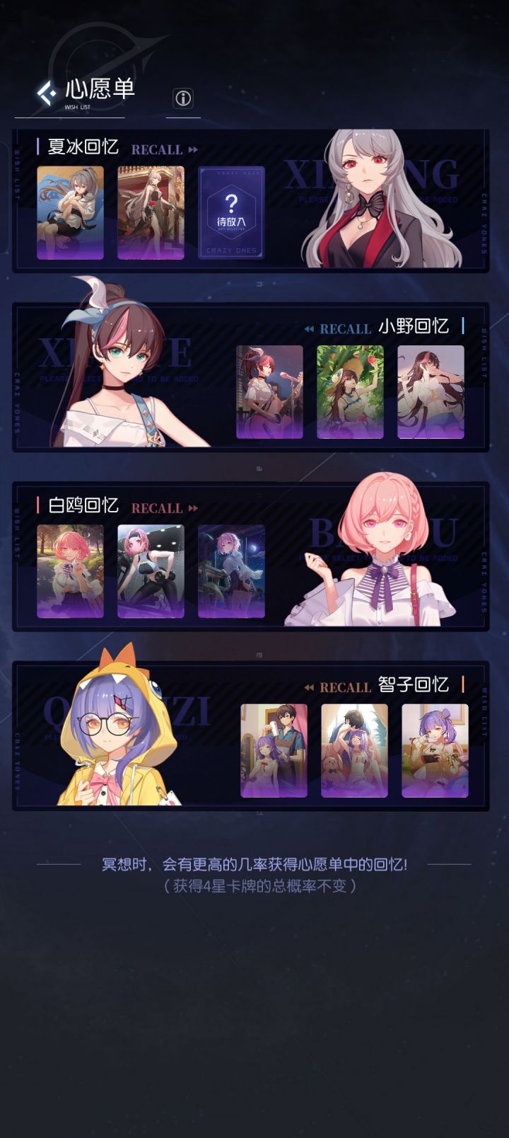 卡池介绍,卡池分为 普通池,轮换限时up,新卡的限时up,限定卡池,普通池:有心愿单的池子,一般不抽,可以选心愿紫卡,性价比略高于兔女郎轮换up池:会在兔女郎,周一的清凉(简称周一),圣诞,玉舞这四张卡中固定顺序进行轮换,其中建议抽取优先级是周一>圣诞。新卡限时up池:新人除了xp一般不抽。限定卡池:量力而行,看xp决定,但新人一般不推荐抽。q:限定卡不强吗?a:这游戏不像大部分二游那