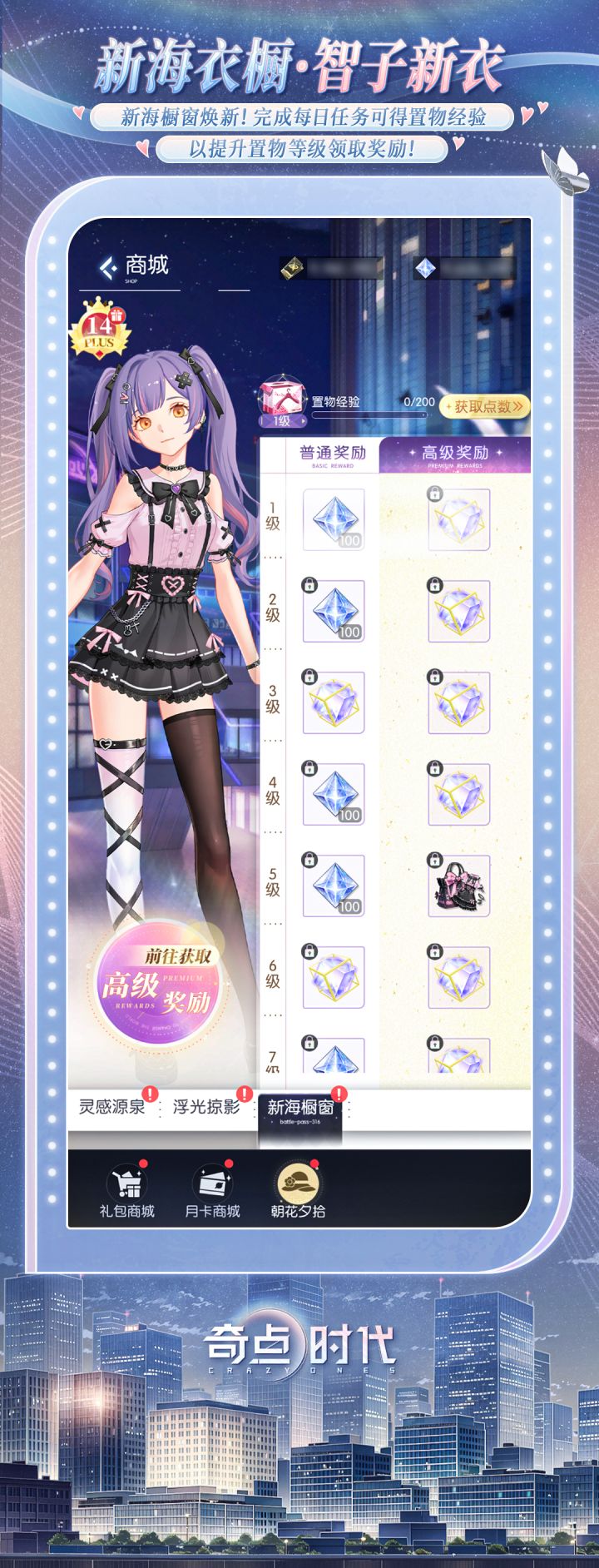 >>>活动时间2025年11月21日更新后至2025年12月19日5:00 >>>开启条件 完成主线关卡2-1后解锁>>>活动说明 ·新海橱窗焕新!完成每日任务可得置物经验以提升置物等级领取奖励!·普通奖励累计可得「抽奖券」「以太币」「2星智子碎片」等奖励。·付费可解锁高级奖励队列!·付费奖励累计可得「抽奖券」「4星智子碎片」「纸鹤」,并可获得「发型·跃动甜野」「发饰·甜心铆钉」「