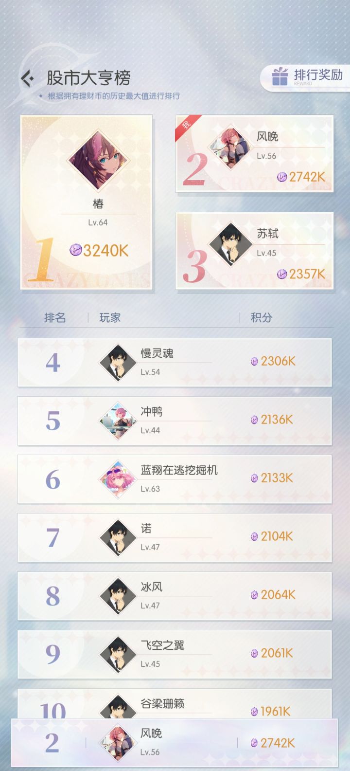 最新梯度榜更新,玩家作品界面在股票旁边,已经上玩家作品了,攻略手册里还有最新逃课攻略,新海和公司事件问题汇总。(微氪,最近在冲榜,比较忙。冲不上去了,追不过氪佬们,就把图片放这里了。)有个群,我是管理,但是也忙。131841655