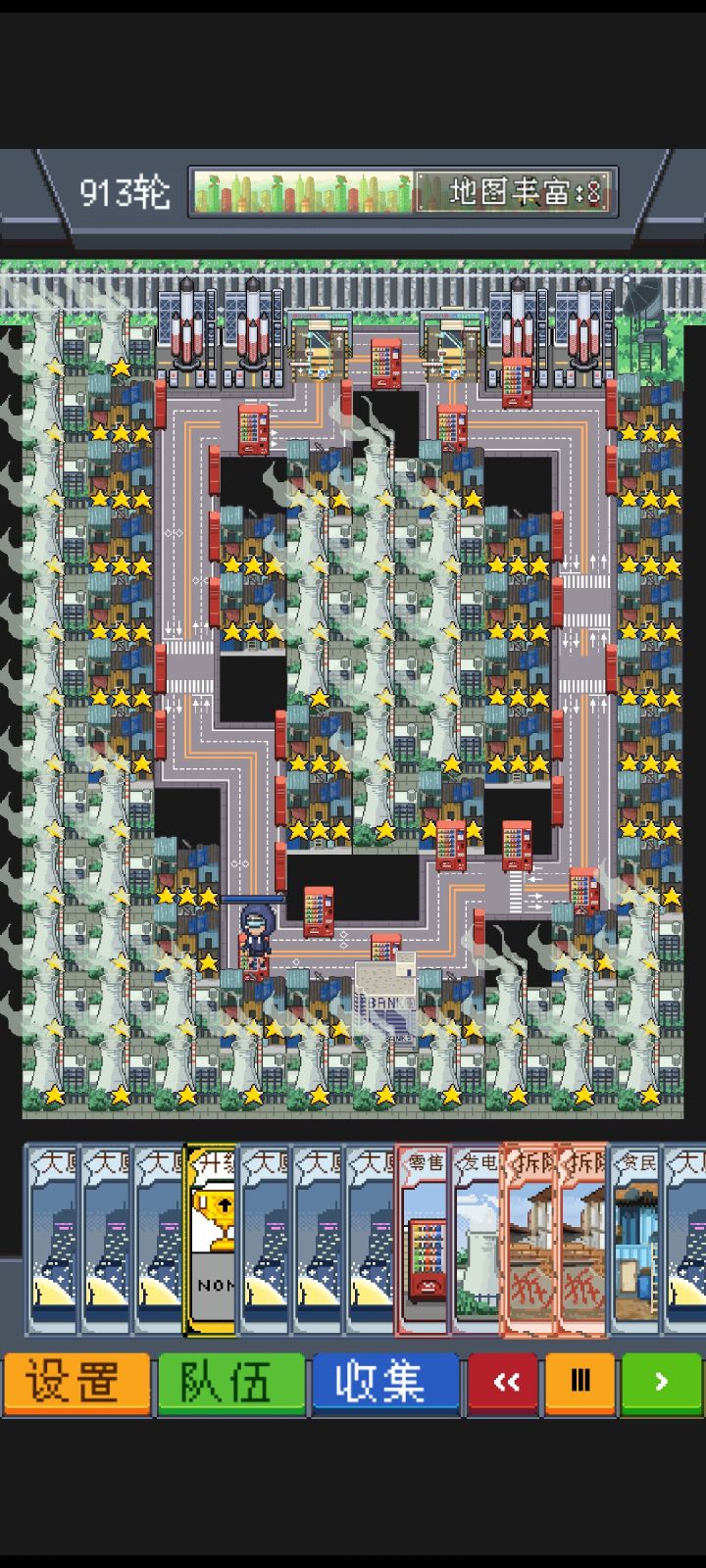 两版本零元购详细布局如下,都必须刷与铁轨接壤地面只有3格同样利用收费站来限制打怪浪费的时间。收费站缴费用工地刷一个银行出来就行。与铁轨接壤4格也能凑合但是会多卡%30打怪时间。极致版零元购走3圈出一次怪,刷图效率比速刷版差一些但是现在有保存功能可以无限刷想刷多少就刷多少。原理是用电塔以及贫民窟扣怪血上百分比限达到即使是钢精灵也能一刀带走,对比速刷版后期几乎不消耗打怪时间也是可以无限刷的关键。缺