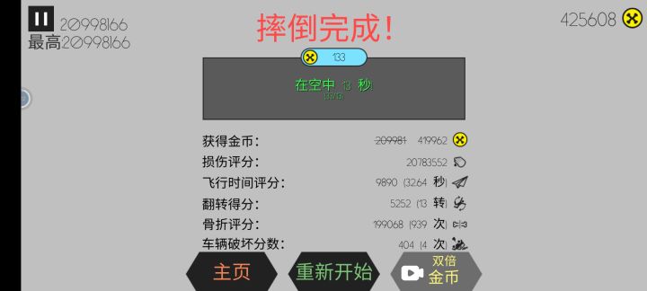 首先开局买三把锯子的地图,然后买购物车,别的别买了,然后换到小人完全坐进去的坐姿,轻轻点一下蓄力(千万不能太多,然后第一个锯子将小人和车卡在一起就算成功了,有很大几率出六,七位数,有一次我挂了两个小时出了八位数快九位,觉得有用的点个赞吧😁)后期有钱了,买滑稽舞蹈,按照我说的做,轻轻松松破九位数,有时候十位没有问题😁😁,这时候双倍金币不用看广告,直接暴发户有没有