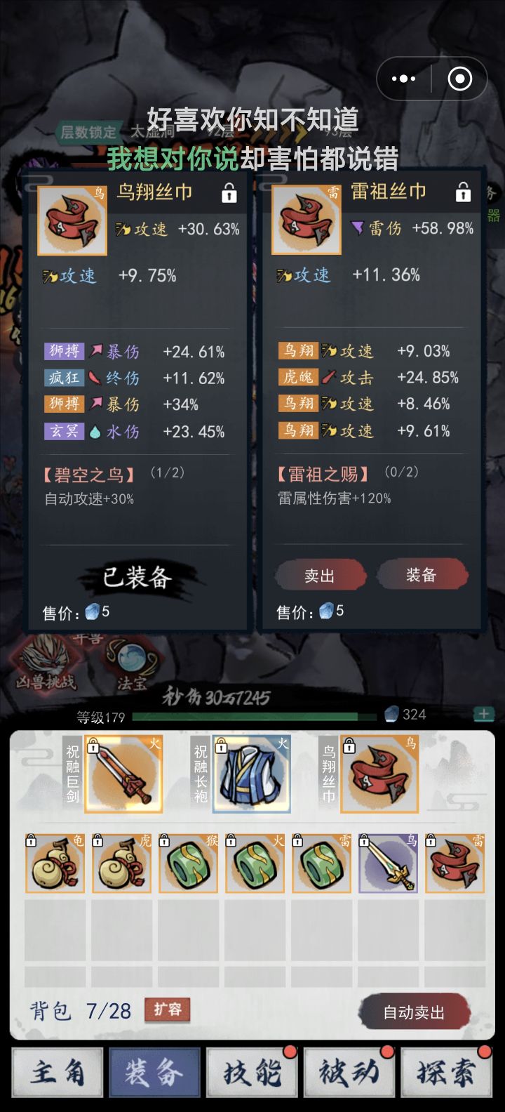 属性:推图打BOSS的时候全加攻击,刷等级的时候洗成全生命装备以及技能:刚开始玩优先凑灵猴两件套,普攻选择闪避加成达到闪避95,中期装备双灵猴达到95,普攻选择终伤加成,后期单灵猴衣服闪避53.2+,武器狮长剑4暴击60.5+,狮铃铛4终伤为毕业属性,雄鹰套装很棒但是主词条拉胯可以备选。大招带基础攻击或者终伤,普攻带终伤,属性伤害当前版本基本无用。普攻几剑什么属性均无用,选终伤加成高的即可。灵