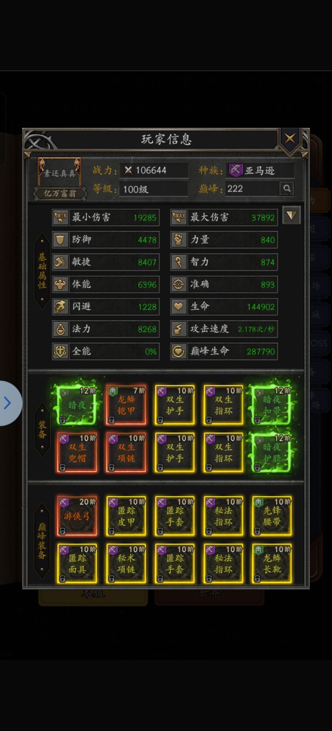 本游戏是个收菜游戏,可以免费离线托管!托管助手可以设置挂机地图刷小怪和跳图自动击杀不同难度的 BOSS。普通地图出装备精华,噩梦地图经验高,地狱地图只有 BOSS。小怪最高出黄装,BOSS 怪出橙装。 绿色套装:12 元的七阶段套装可以用到换毕业套装,目前最高 20 阶套装 巅峰装备:55 级开放噩梦地图解锁,目前最高 750 套,第一次进噩梦营地会出限时头盔礼包 深渊装备:65 级开放地狱地图解
