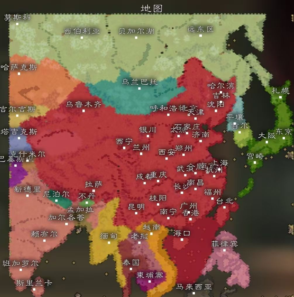 需要地图的可以私聊,地图的地貌和城市资源还没有补充完全,准备后续做一个明末混战剧本(架空武将,百家姓取名) 地图需要自己调城市资源,以下是一些参加 目前城市类型参考 蒙古—内蒙古区域:所有城市募兵资源高,地广人稀,全部城市均有马群地貌 北京、乌兰巴托、沈阳、上海、成都、首尔、广岛联系京城规模,全补顶满 重镇城市建议最低资源,以免影响地区兵力和经济平衡(及非排除上面区域城市个所有省会城市以及昌都、熊