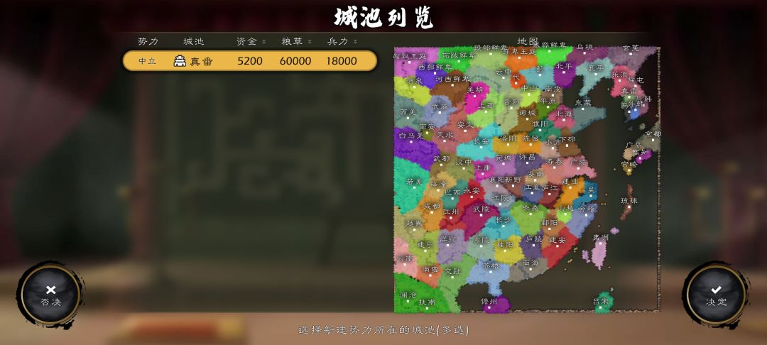 此地图是我花了近两百块找人定制的,就是在老帝三国本基础上加上“朝鲜半岛,日本部分岛,吕宋岛,海南岛”,还有部分北方异族。因为三国主要战场在中原,原来其他博主分享的地图都到东南亚了,北方异族一大片,严重挤压了中原版图,城池地盘太小,种树种田都不够,所以我定制了这个我想要的效果极大地图。 今晚我花了三个小时把每个郡的太守都拎出来做城主,大家都是一个城起步,来一场酣畅淋漓的汉末争霸! 作为我自己,则躲在