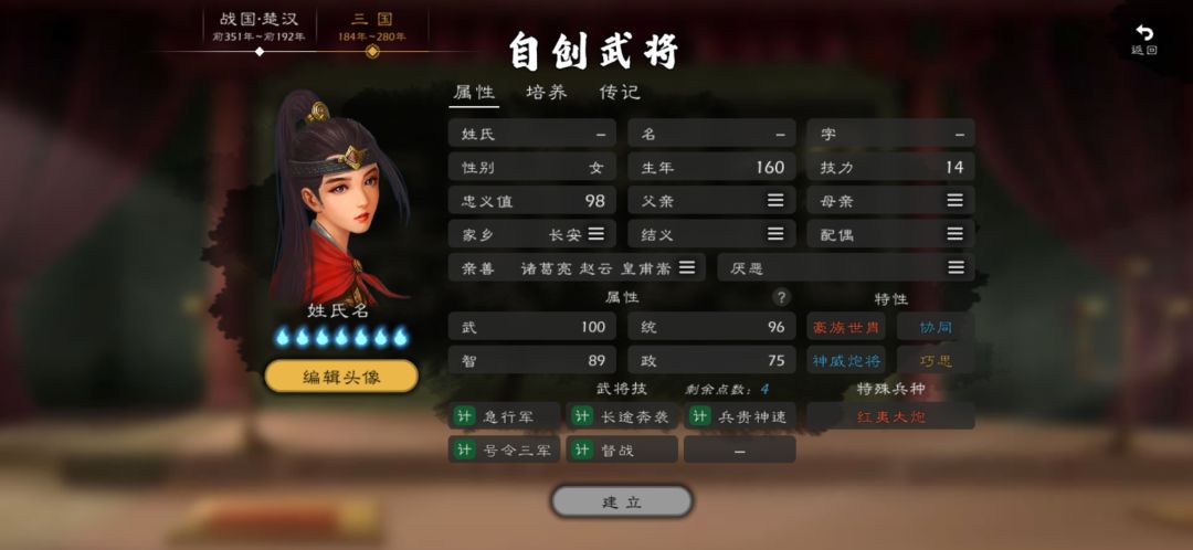 实用的自建武将
