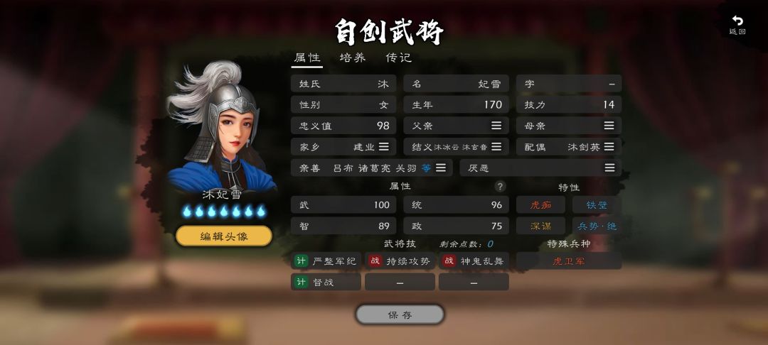 进入自建,不要碰属性,直接进入培养页,就有完整的99页。宿卫虎骑目前没有完全契合的培养页,长兵,重骑,反击,总是三缺一。 简化了界面,一眼就能看到想要的兵种和相应的培养页。 (仅代表个人观点,不喜勿喷,出门左转。)