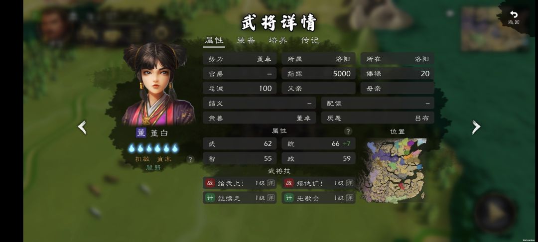 先申明,本人虽然买了战国、楚汉,但一直没玩 ,一直在玩三国,所以不做战国楚汉的自建,这两个DLC的武将技太多再动了,完全是神仙打架、机制崩坏。 内政类自建武将我分为:军师类(必须)、太守类(有作用但不大)、登庸、探索类(几乎无作用)。 军师推荐——属性:100智、96政加特性:勤政(必须),再加一个任意军师类特性(毒士、卧龙、凤雏、诡谋、深谋任意一个,狼顾之相不推荐),培养页:文官类16、22(更
