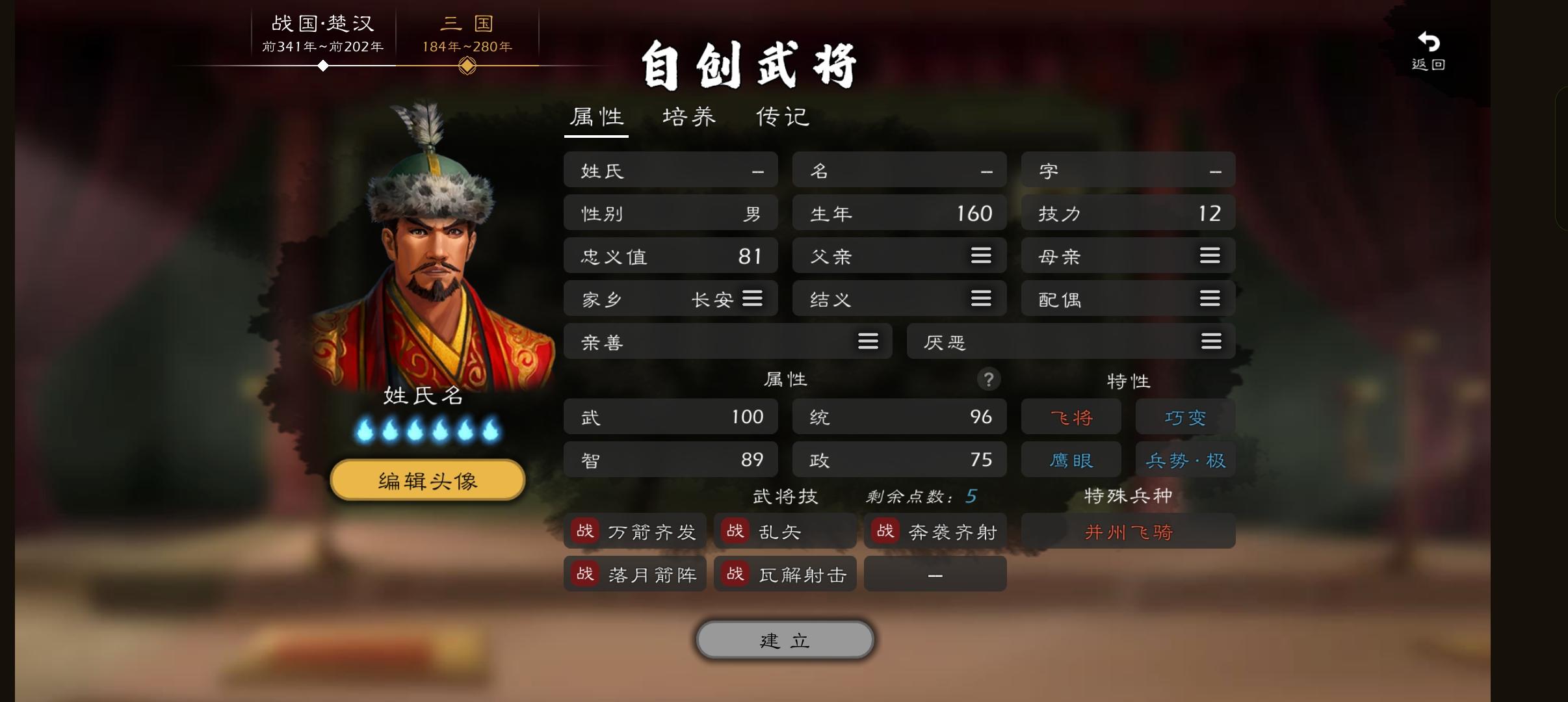 飞燕营推荐 特性:神射(红)、巧变、兵势绝、振奋 武将技:破虏齐射、……(弓兵武将技都挺一般的) 培养页:武将类69(我觉得弓兵特性没有培养的必要,还是92页战法双减加战意好用) 评价:下等兵种。女武将才能用的兵种,特性看着挺多,实际上就迂回好用,远近皆能,但谁会让这么脆的弓兵打近战啊。 无当飞军推荐 特性:神射(红)、巧变、兵势绝、振奋 武将技:破虏齐射、…… 培养页:武将类17、63(推荐92