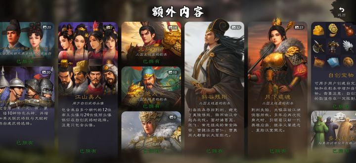 听说周瑜下水道就没有买,北境狂人太丑了太丑了!我不要。有没有像八百典韦投石车这种有点意思的玩法呀,或者是ai势力会强一点的大地图?又或者是像之前自建扎营兵?一回合多动的就不要了真玩腻了,手点的好累,现在丞相和法正基本一进图就被我锁在城里当太守,两个人刚好作伴。
