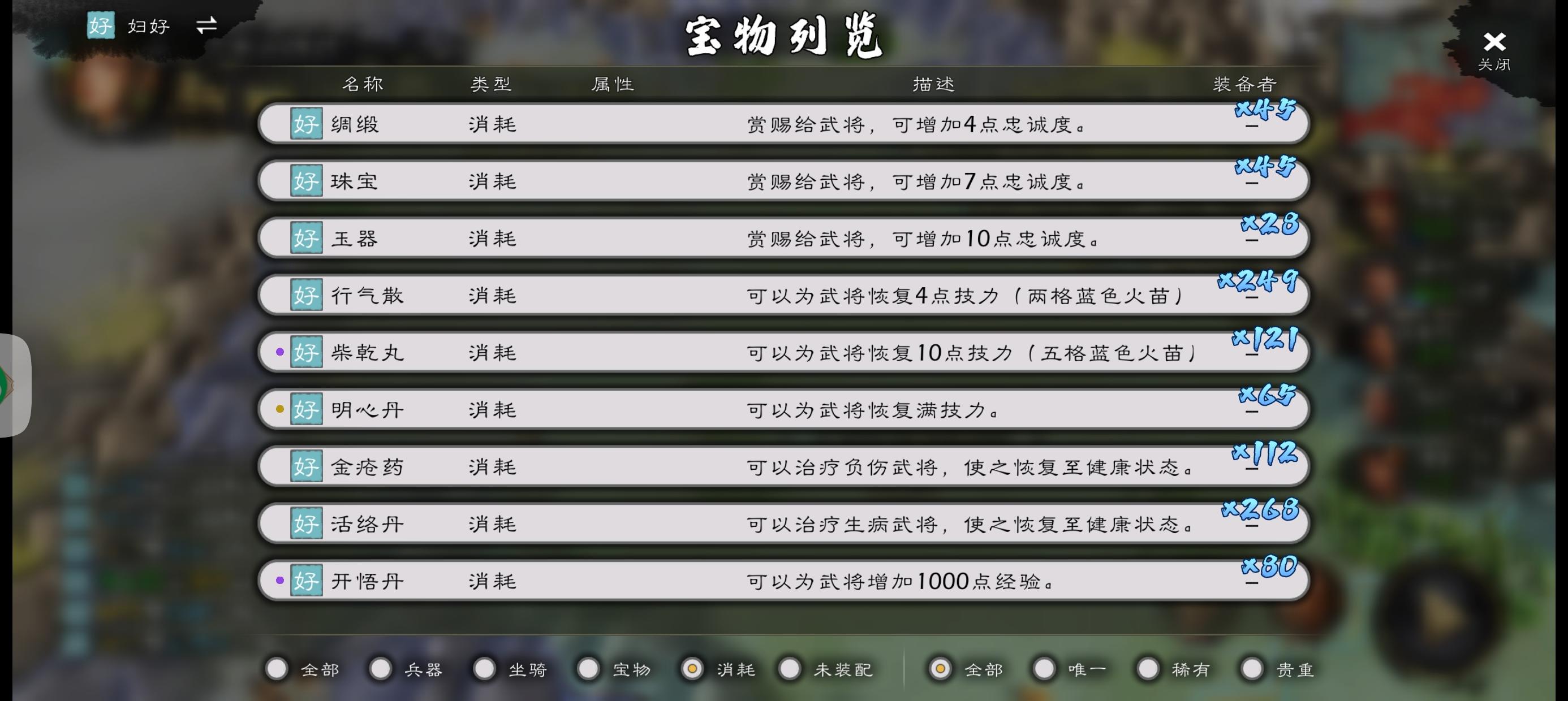 这种消耗品可不可以加一个批量用,多个武将一起用,这种一个一个慢慢点真的很累,点半天才升一级。还有那个释放俘虏,处决和招募能不能改成一次多个选中。还有登庸也是真的都好麻烦。这种军团不能自己运输物资到靠近别国的城,打完了就完了,干等着后面的将慢慢走过来,我不给指令就战时干等,没打的时候都会偶尔运兵去兵少的城里,挺难受的
