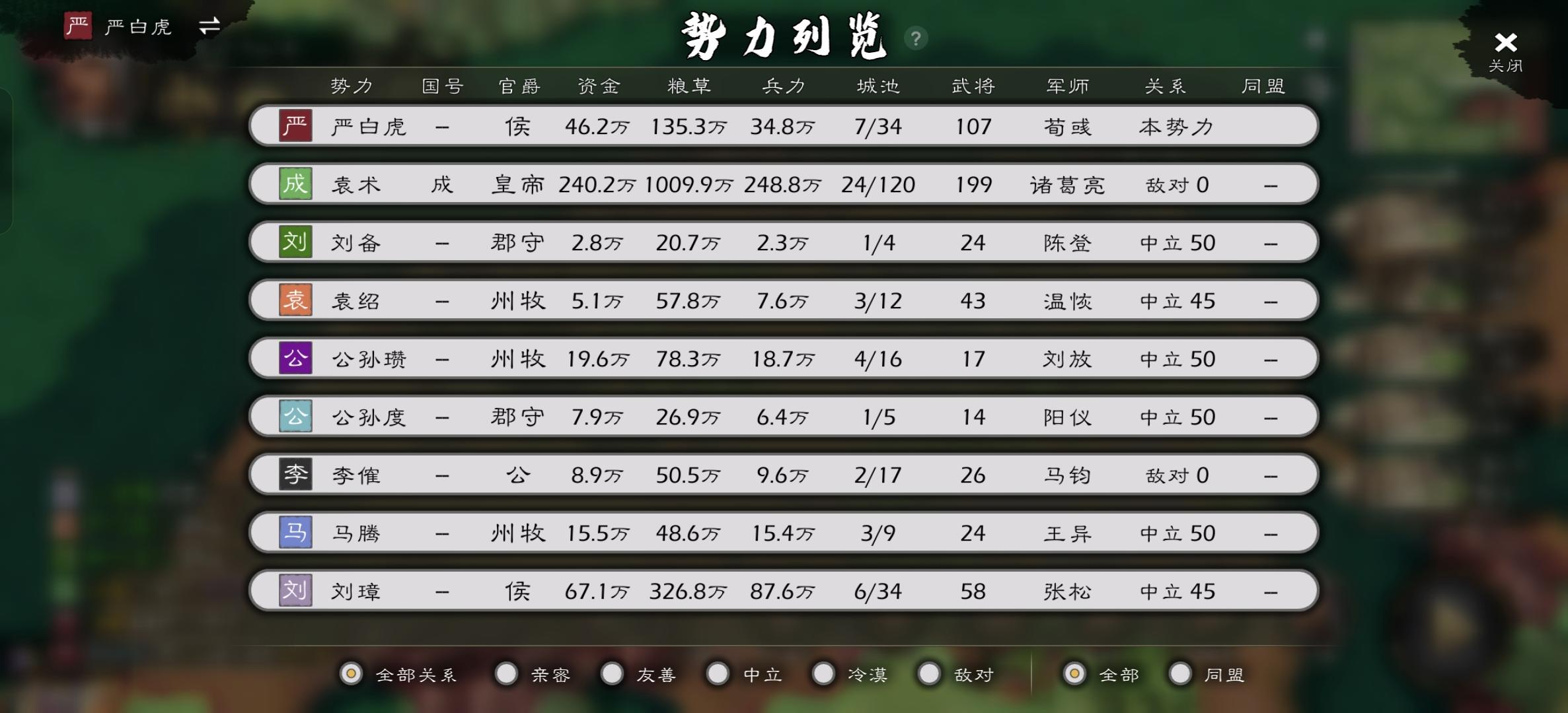 开局江东二祸一个一个的灭,结盟一个先灭掉另一个,开局占山越建安直接升扬州牧,占稳后曹老板被打得只有洛阳,数万大军全力进攻虎牢关并攻下洛阳获得曹老板大礼包。现在和袁术撕破脸打了交通枢纽柴桑,如今进可取荆州,退可守江东,袁贼虽有数百万之众不足惧也