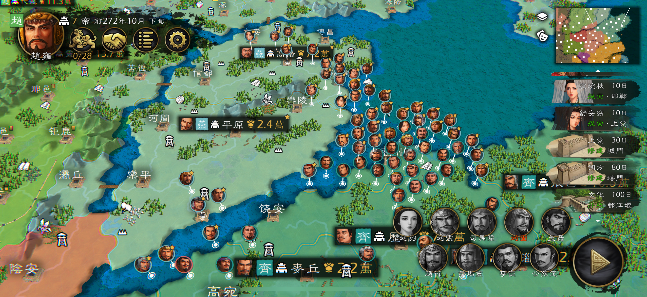 120个主城,全面增强七雄,增加少数民族势力,共24个势力,400多个自建武将。每个国家都有红特性强力自建武将。选赵雍开局快速攻灭中山,吊打儿子赵何之后,占据上党即可享受秦,魏,韩,周四国来攻打上党高地的爽局,用好本国自建投石车法师,使劲砸就行了,现在分享出来,需要自取。 #逐鹿 #逐鹿自建地图分享