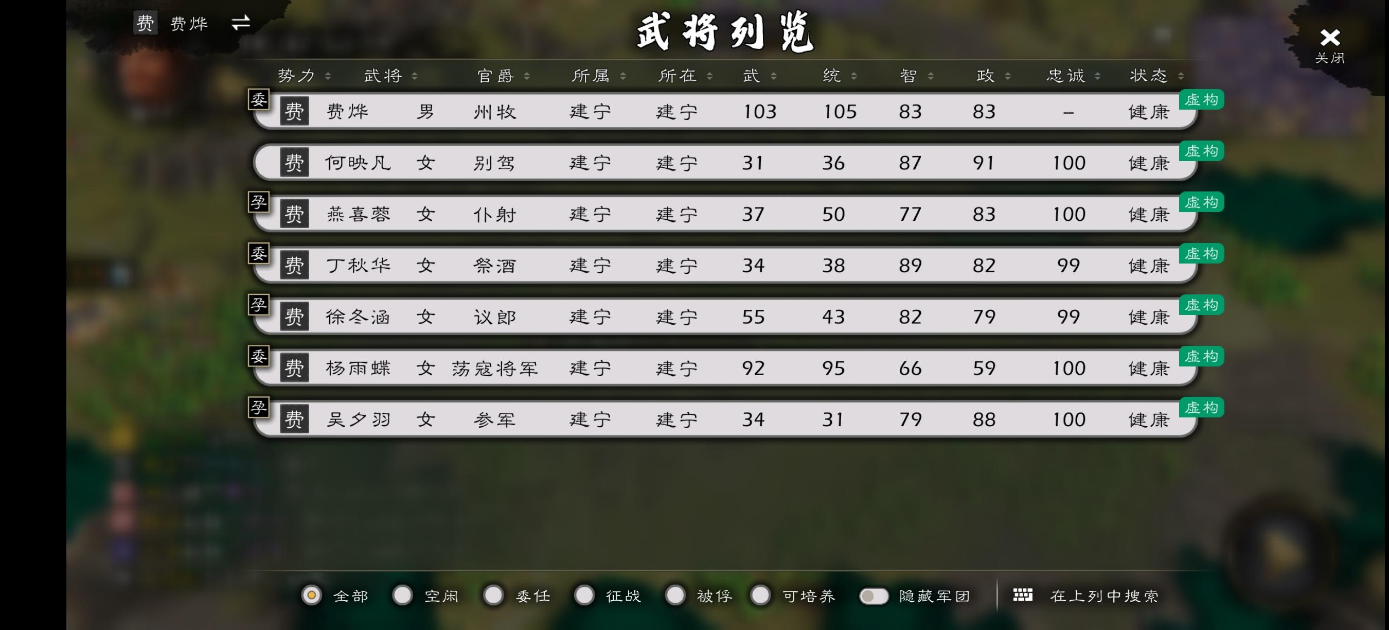 黄巾剧本,自建了一个人物占据东南,举荐只要女的,来了就结婚生娃,准备老一辈的就在家造娃,以后就靠子女军团AI打天下。开了死亡,准备只要不是自家人就杀,不知道能不能打出来,反正先生几十年娃再说