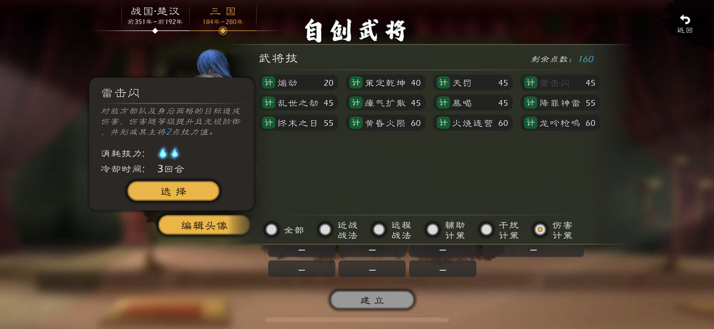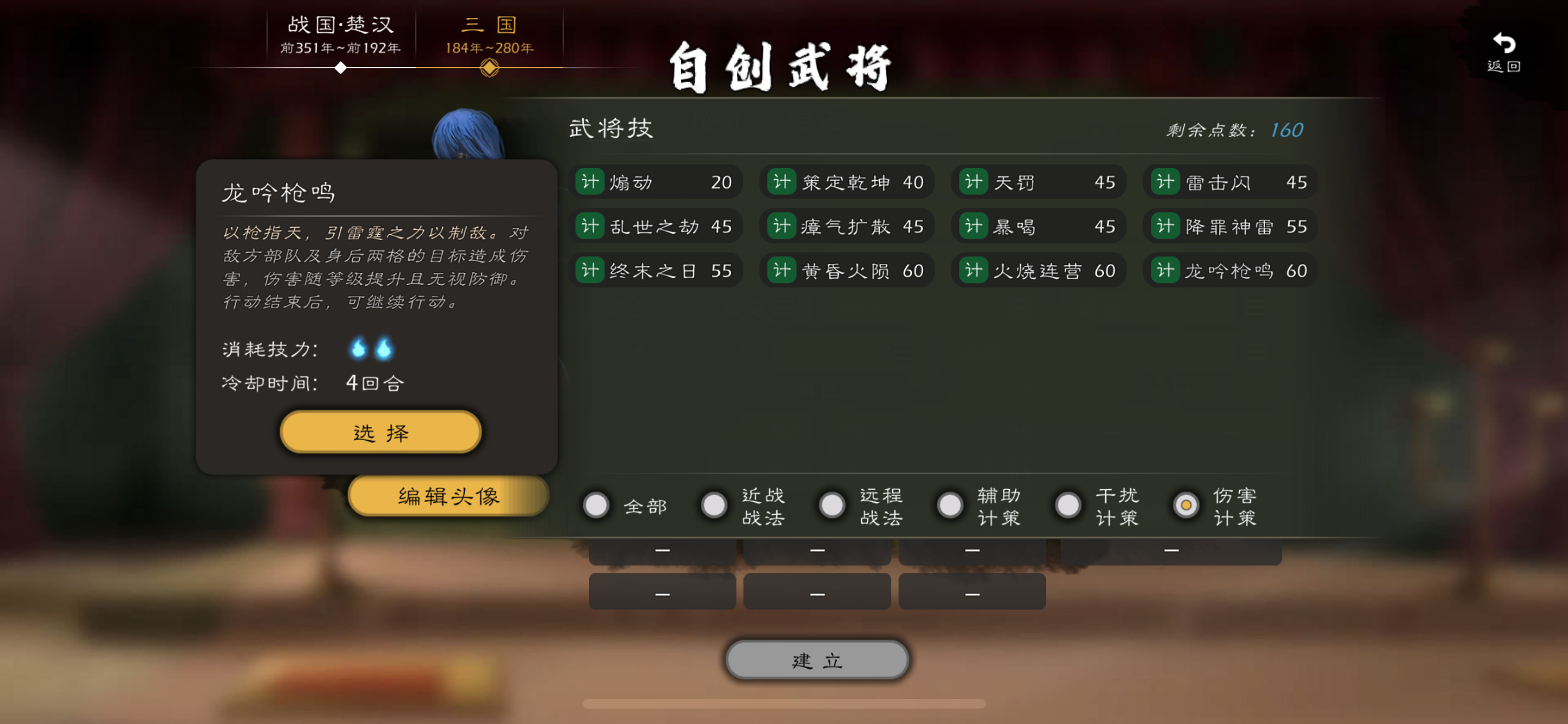 #心心 出啥买啥,主打一个支持,这几次更新虽然没有实质性的内容,但是本体武将翻新一下也挺不错的,原始人确实该加强下。首先自建限制的多狠我就不想说了,头像,技能点数,特性。1.希望出自定义特性,就跟自建宝物一样,大家自己起名字,属性都是固定用点数选择的,或者原有特性可以重新自定义名称,我想自建个女武将用精锐枪兵,那就要选择熊虎之将,一个女将顶着熊虎之将的特性太违和了。2.增加技能点数,160太