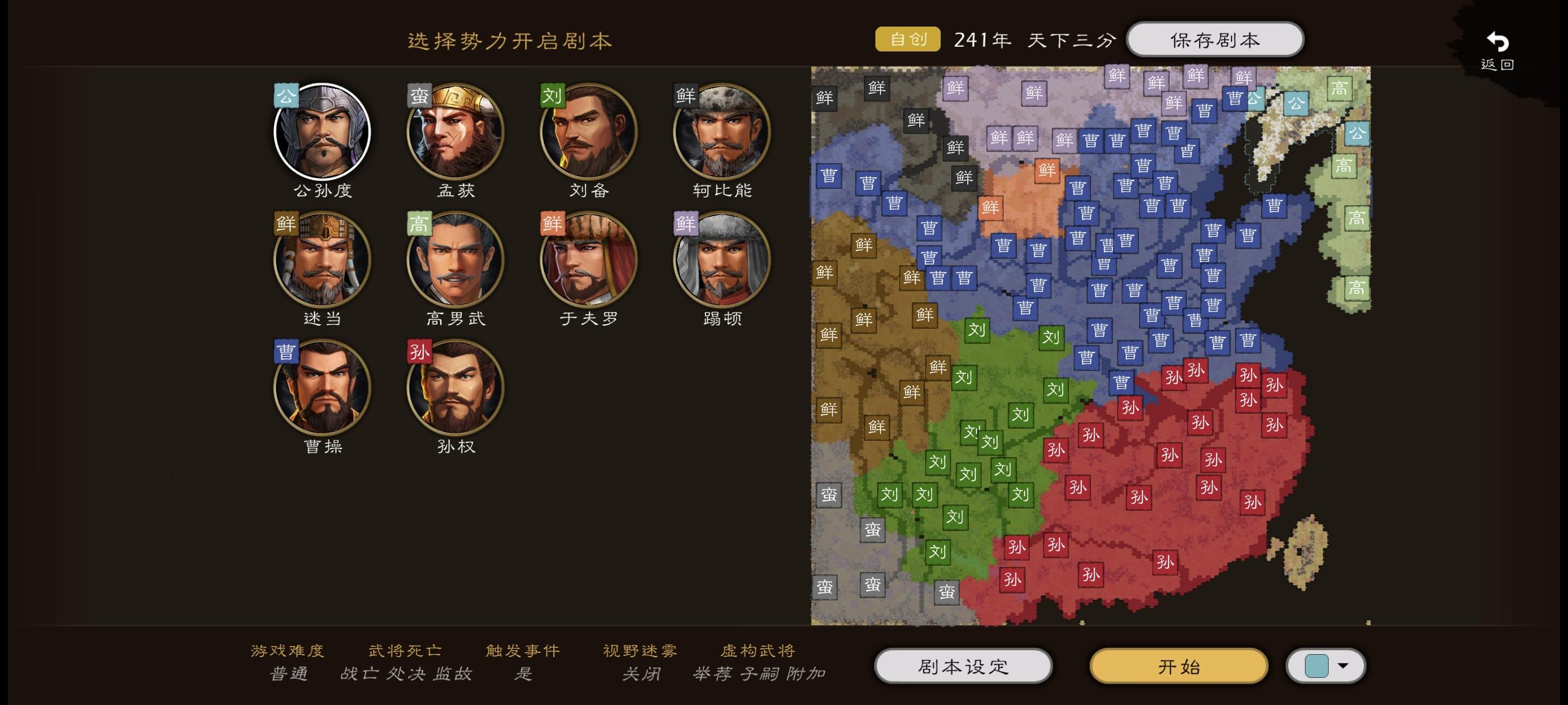 本剧本内容丰富,大家自己去发现,包含周到大清的势力。包含1900多个武将999个宝物,特别感谢炸南瓜大佬提供的武将。元朝是大boss,最好留着最后去消灭。