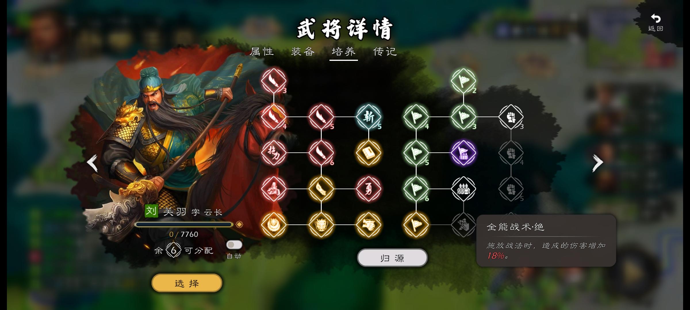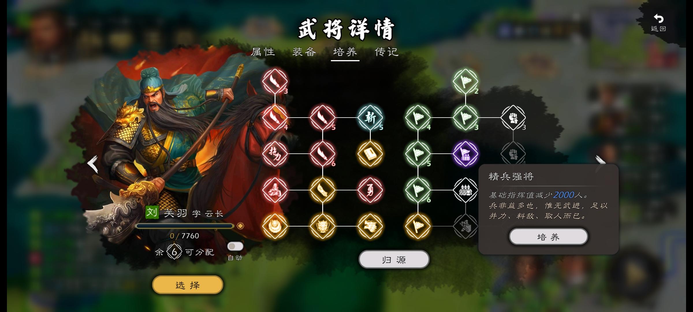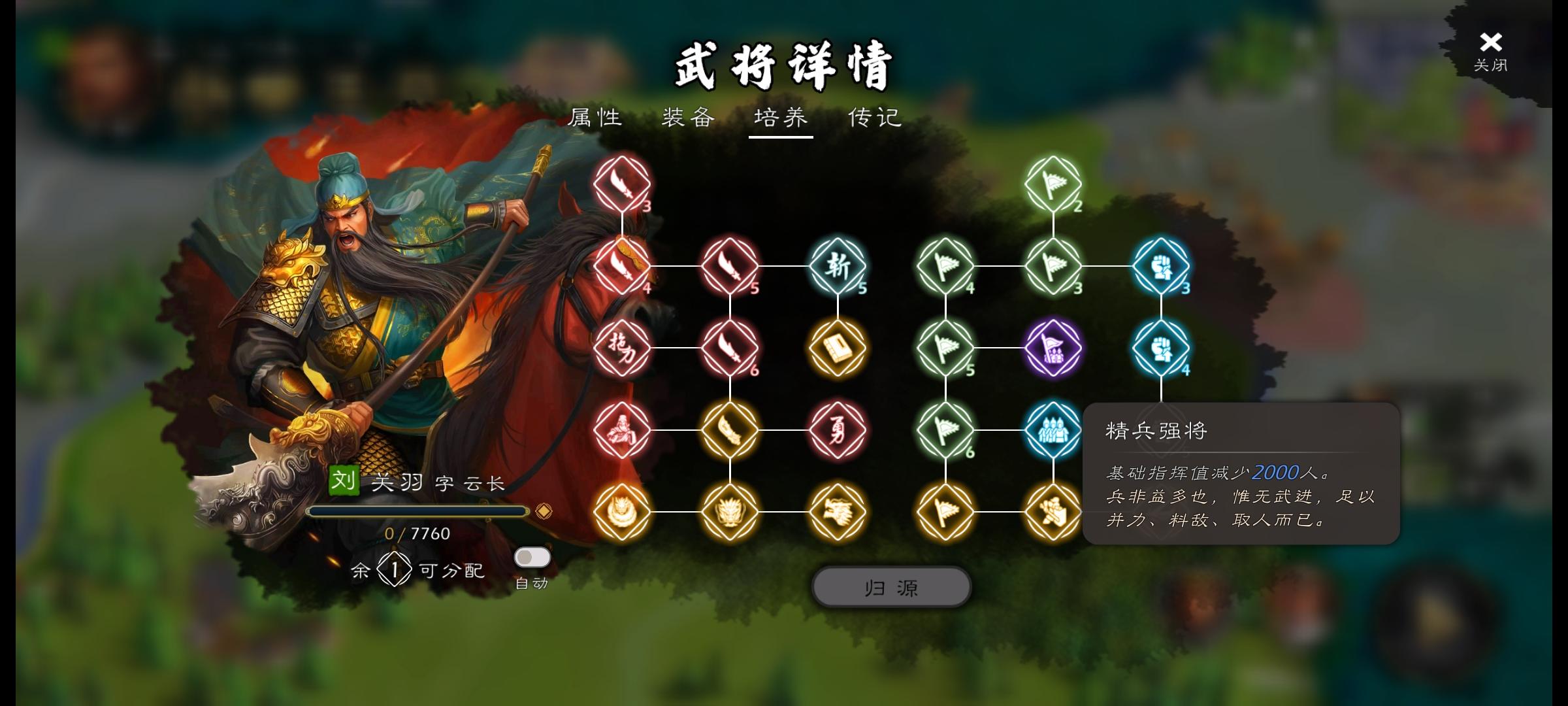 1、两种无限连无限连暂时我发现两个,第一个是玄甲军无限连,这个就不说了一回合统一全图,没意思,主要说第二种怯薛军,配置如上图,原理是通过战争动员(补血)+心境林(加计值)+鬼箭(打伤害)—循环无端+心境林+鬼箭,如果没粮了就用以战养战收尾补粮,无限连前提是用鬼箭前要保证技力值在5个半以上,这里就要用到培养里的两个点,御军和战意,哟个增加技力值上线,一个箭施法是减少技力值使用。可以跑全图,一回合歼灭