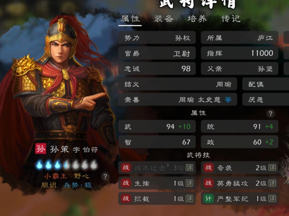 孙策还是太过超标了,居然拥有全游最强红特性,好兄弟太史慈都从原始人加强成原始人了呜呜…五虎五子都吃完肉了,大吴第一猛将策子什么时候能喝口汤?