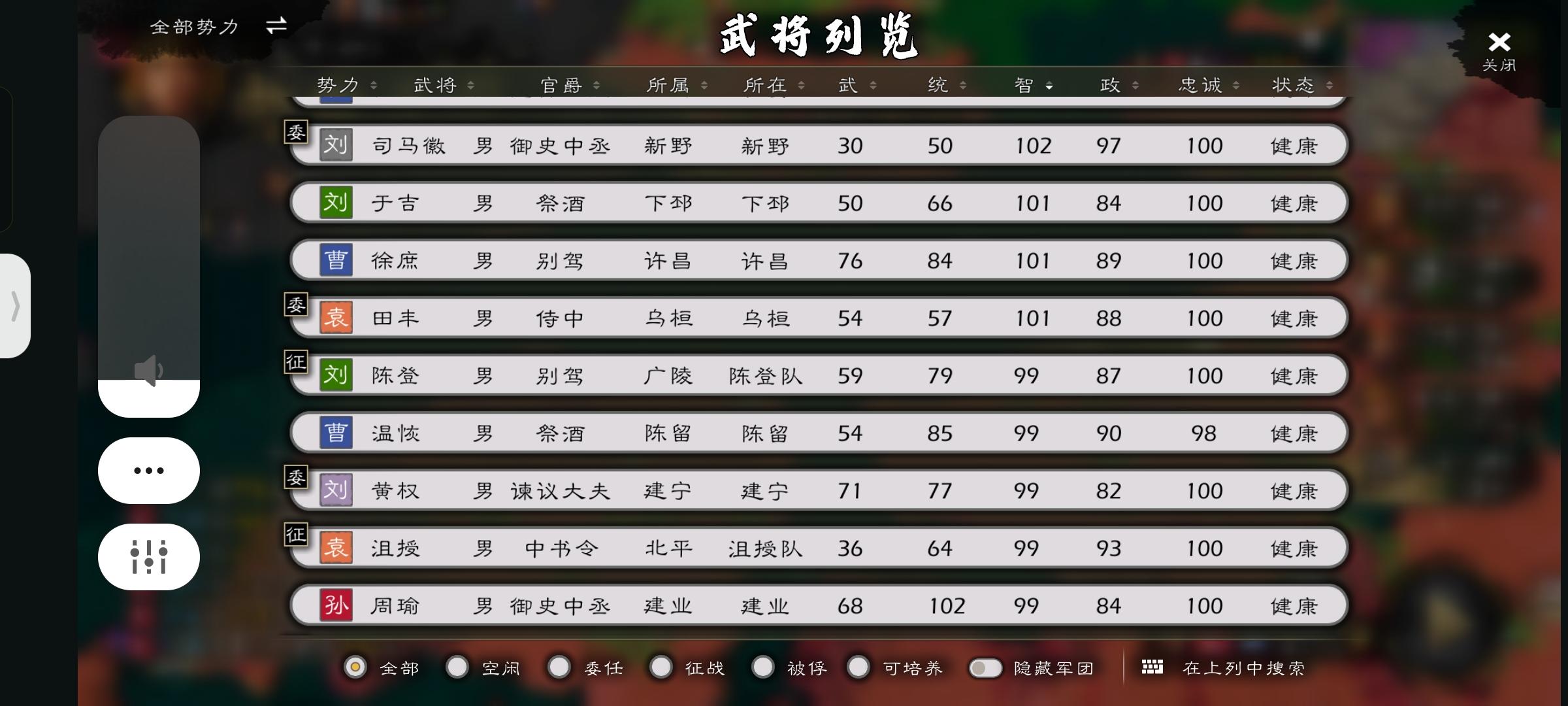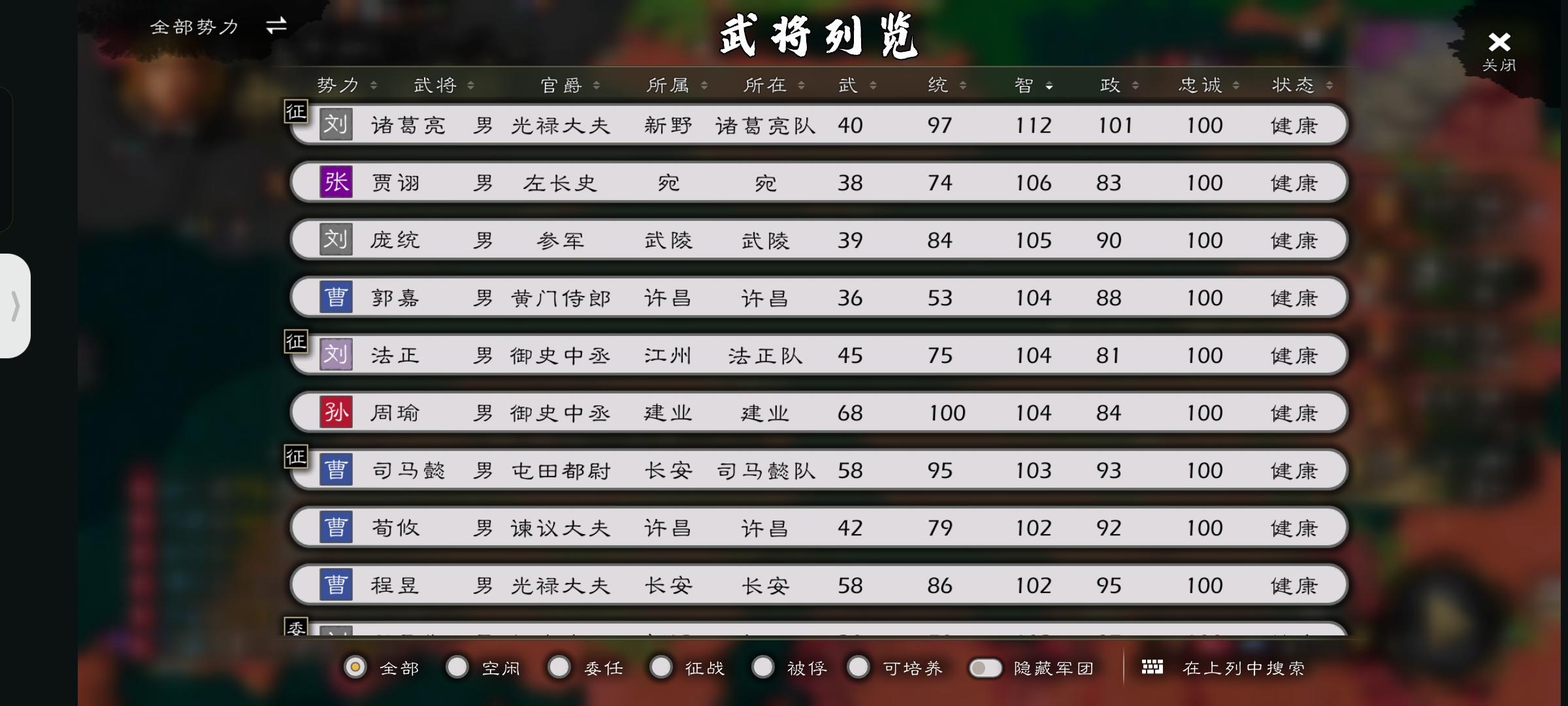 在原版本中,周瑜的起始智是97,略低于丞相的100、贾诩的99、庞统,郭嘉的98,看上去没什么,但周瑜没有大范围攻击法术,仅有一个万箭齐发稍微可以用用,但在吴国前期除了周瑜本身是没有可以用的弓将,所以这个看起来不错的技能可以说只能当个单体爆发技能。无论在正史还是演义中,周瑜都是top0级别的谋臣,而借东风火烧赤壁真正来说也是周瑜的功劳,所以说起码周瑜起始智也应该加到99,并且得加一个大范围法术。