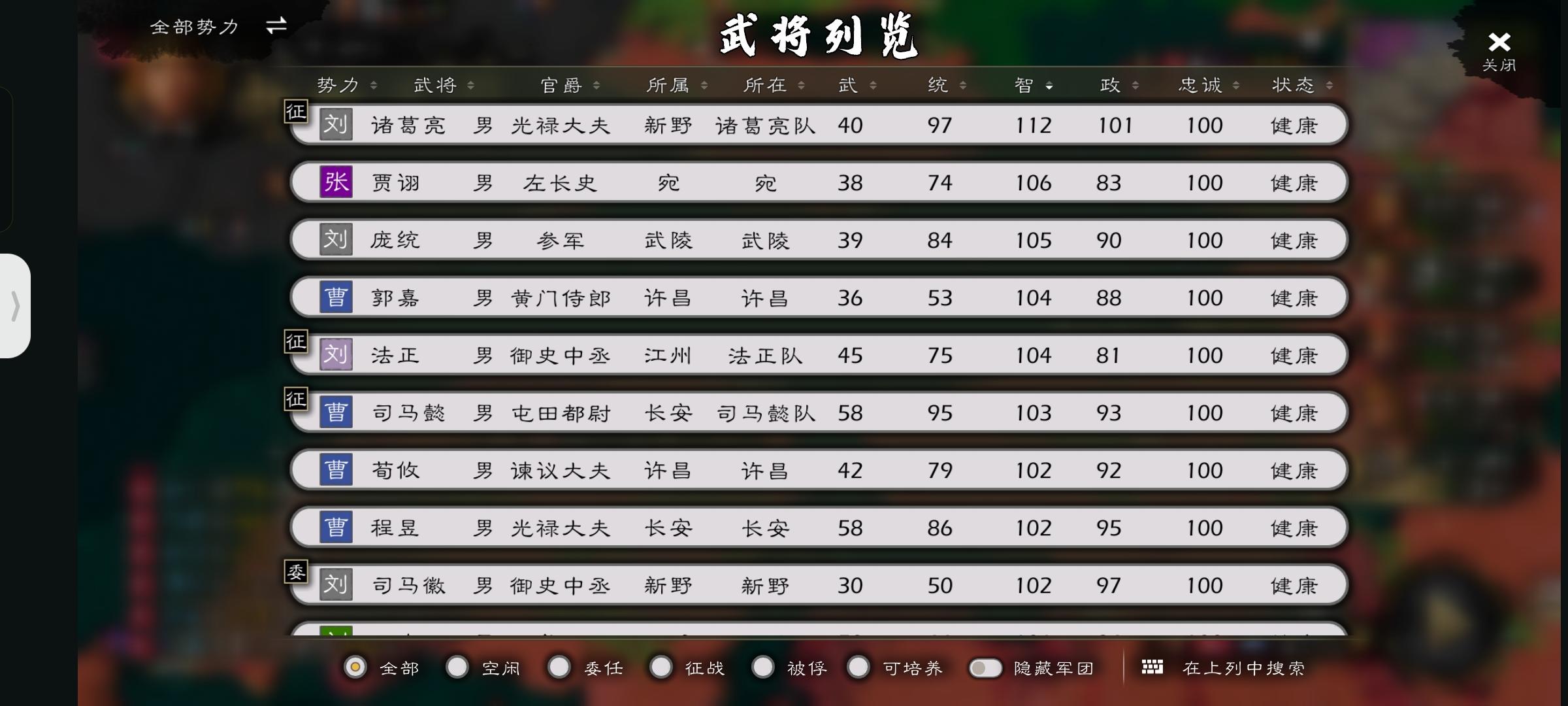 天榜:诸葛亮,张飞。地榜:关羽,赵云,吕玲绮,曹仁,马云禄,黄忠,法正。人榜:妇好,吕布,马超,张鲁。其余都是酱油榜。