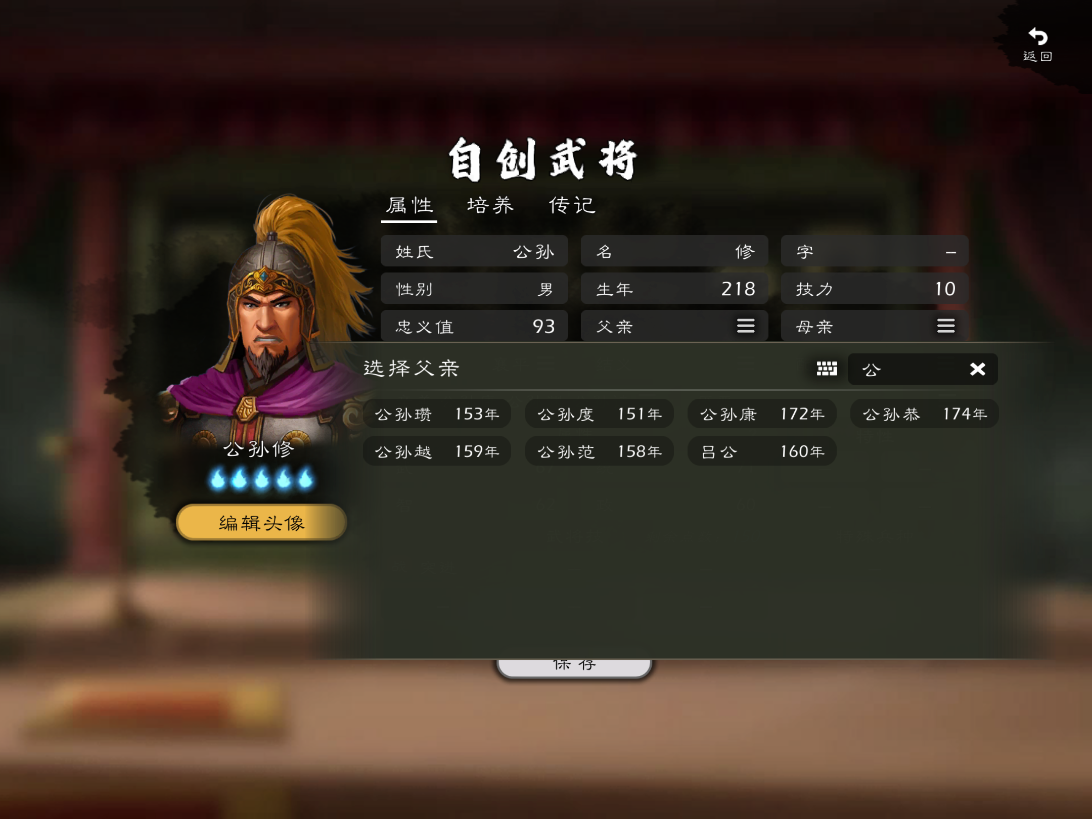 #逐鹿 能不能把三国武将生年时限从160年提前一些还有父亲必须选大于该武将十八岁也不太好如我自建公孙渊之子公孙修 公孙渊205年出生那公孙修最早223年 而公孙修与其父兵败死于238年公孙修在游戏中还未出仕