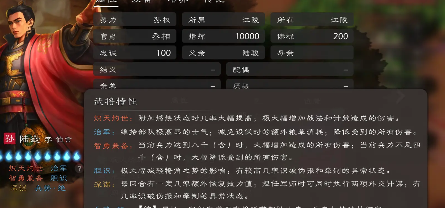 特性,智勇兼备18,炽天,极大幅增伤,最少的极大是33,这里就有51了,还有装备特性,对火属性,大幅增伤,加26,就有77,他的天赋树特性计策真伤,不可能比姜维的还差,就算他15,有92,还没有算装备数值,