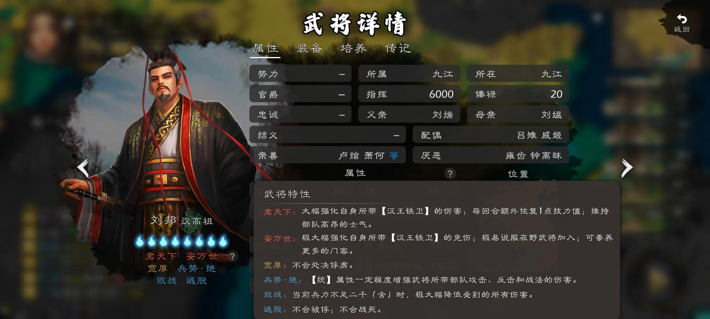 心心最近测试发现君主出征天天改朝换代影响体验感,还有开局可以自定义国号,提了很多次,希望早点落实,对于这个问题不如把主要君主加一个刘邦逃脱特性,比如刘备就可以加这个(或者君主就暗含不被俘虏的效果,灭掉势力再招募),建议反馈给策划,三国也加这个逃脱的特性,战国和三国部分好的特性应该可以互通,不要什么都限制。古代基本不到亡国,君主很少阵前被抓。还有战国要更新一下,都是花钱买的,不要厚此薄彼。
