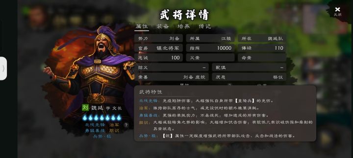 这是我自己刷出来的,仅供兄弟们参考,父亲是我自建的关宁铁骑,带的是循环、釜底、鬼神、阻断,我本来想刷出个止戈战法,可惜刷了俩小时没出来,我就没耐心了,兵贵很可以的,感觉比心境林好,特性红色的本来我想刷出个兵仙的,可是也是刷了俩小时没耐心了,给个闪击就用了,还有心里面给的俩正面特性我想刷个筹谋的(增战计伤),也是刷了半天不给,也没耐心了,不过现在这个也可以了,项羽都扛不住我一套,一万多兵俩技能就被我带走了,因为这神童培养里给了战法增伤12%,很得劲,加上闪击的极大增伤,振奋的略微增伤,再加上装备的9%增伤,很给力。打部队很牛逼,不过打城不行,得换重骑兵用正合。这套蓝条不担心,有兵贵加釜底够够的。