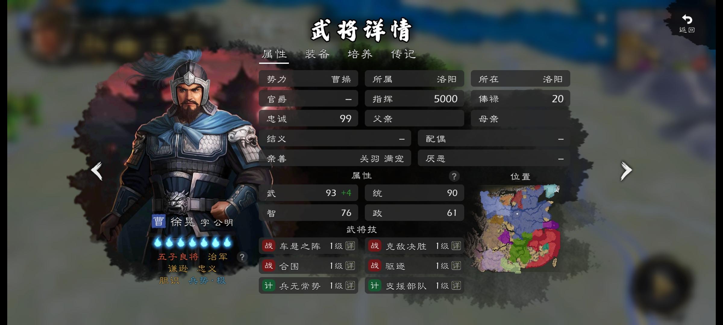 目前五子良将就剩他最废,张郃乐进没的说,于禁投石车也不弱,张辽双红特性也能用,徐晃技能不行培养页更不咋滴也就打打辅助,蓝耗也有点过大,建议加个红色亚夫特性,把治军去掉,效果就是维护部队高昂士气和回蓝,省的特性有点多,再加一条增加造成的所有伤害什么乱七八糟的,培养页加个重骑什么的和御军,再把驱逐换个回蓝的技能,这样蓝差不多够用了还能挂个兵符啥的也不超标