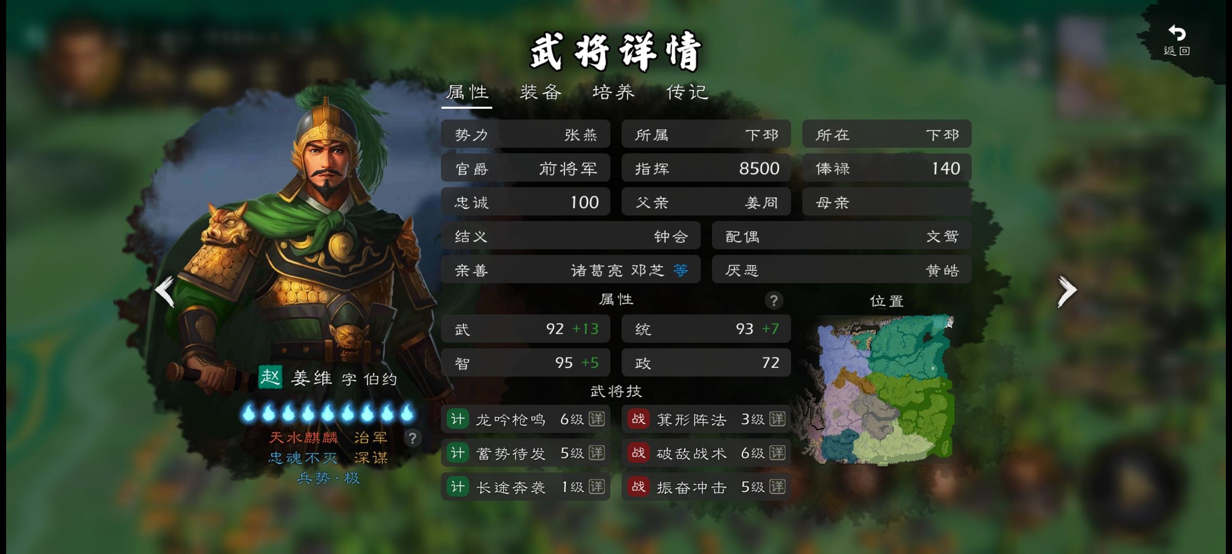 特性,智勇兼备18,炽天,极大幅增伤,最少的极大是33,这里就有51了,还有装备特性,对火属性,大幅增伤,加26,就有77,他的天赋树特性计策真伤,不可能比姜维的还差,就算他15,有92,还没有算装备数值,